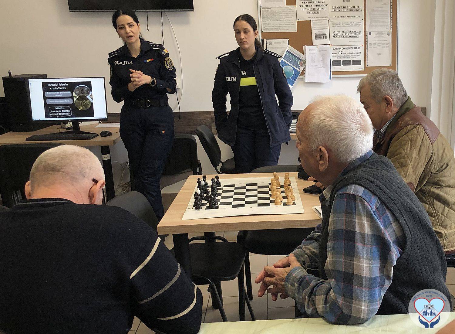 Persoanele vârstnice de la Centrul de zi „Clubul Seniorilor” Deva s-au întâlnit, marți, 18 noiembrie 2025, cu politiști de la Compartimentul de Analiză și Prevenirea Criminalității al Inspectoratului de Poliție Județean Hunedoara, în cadrul unei activități care a avut ca temă principală prevenirea fraudelor și înșelătoriilor în mediul online.