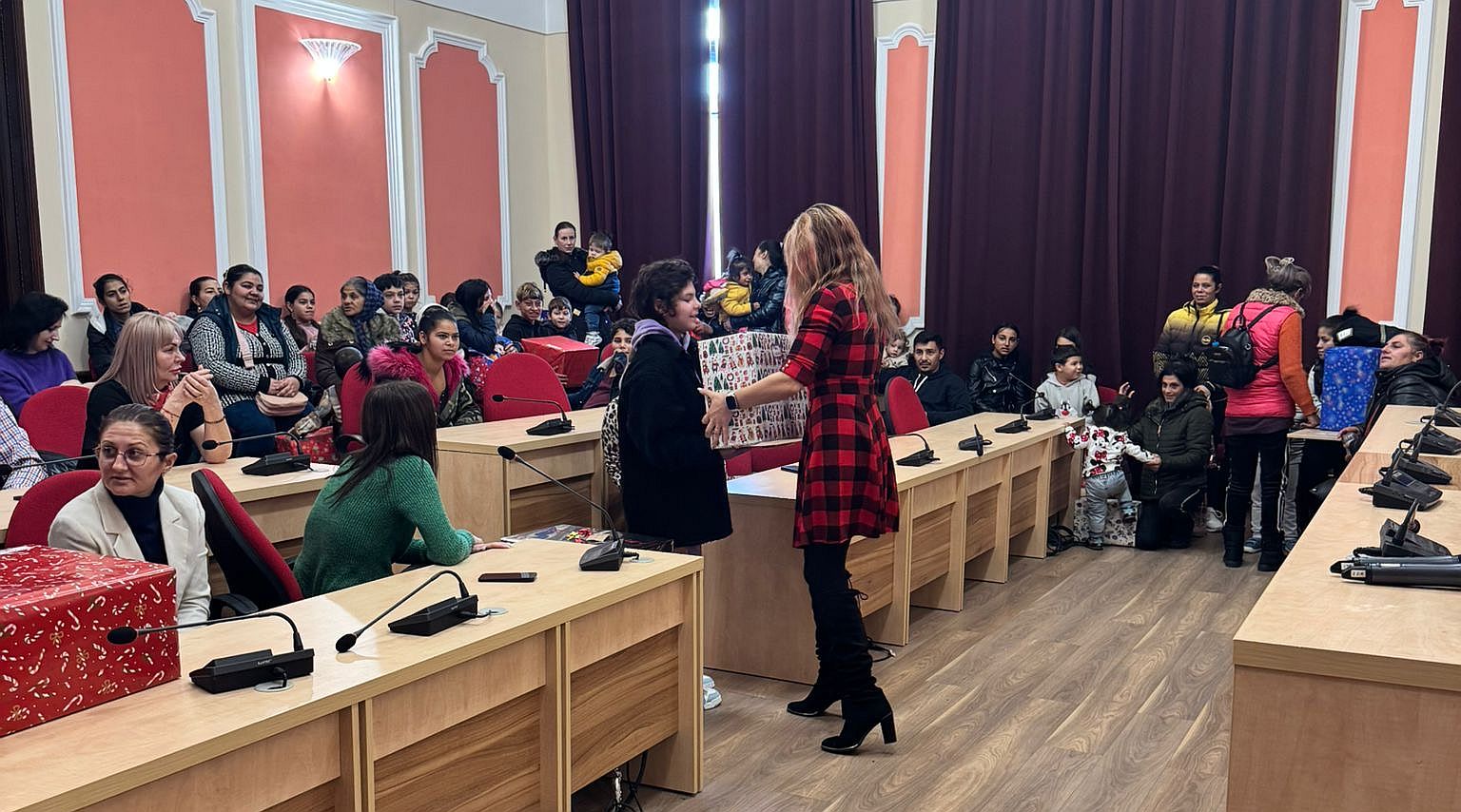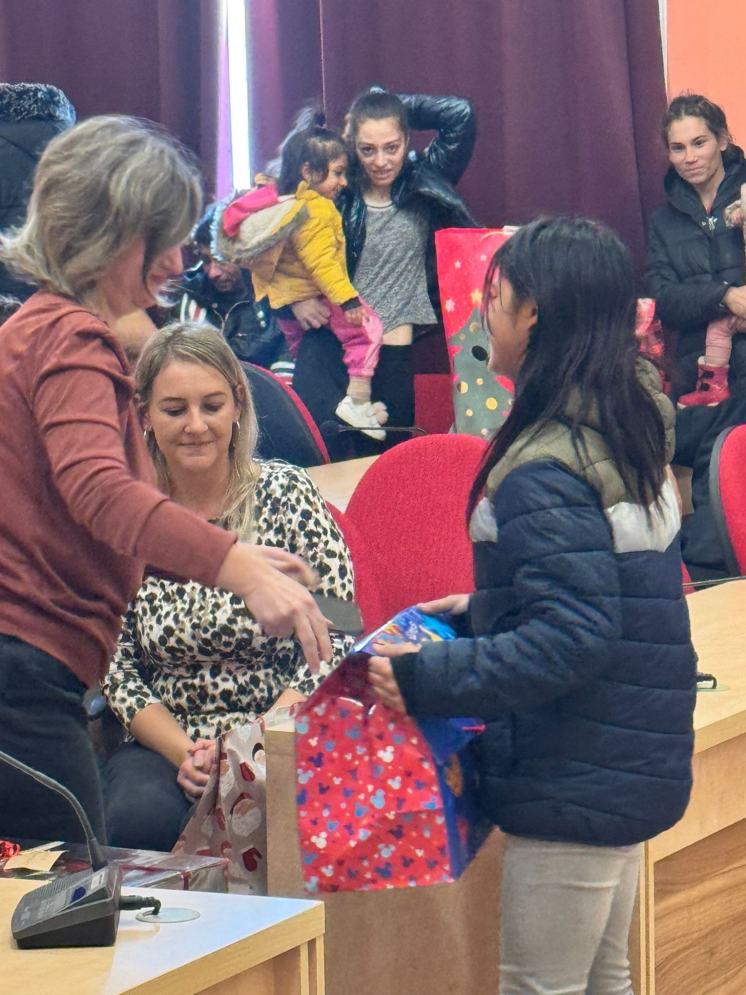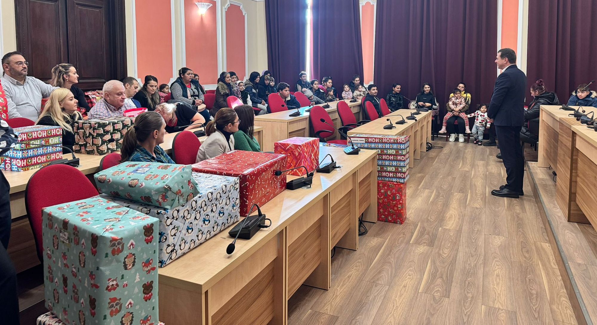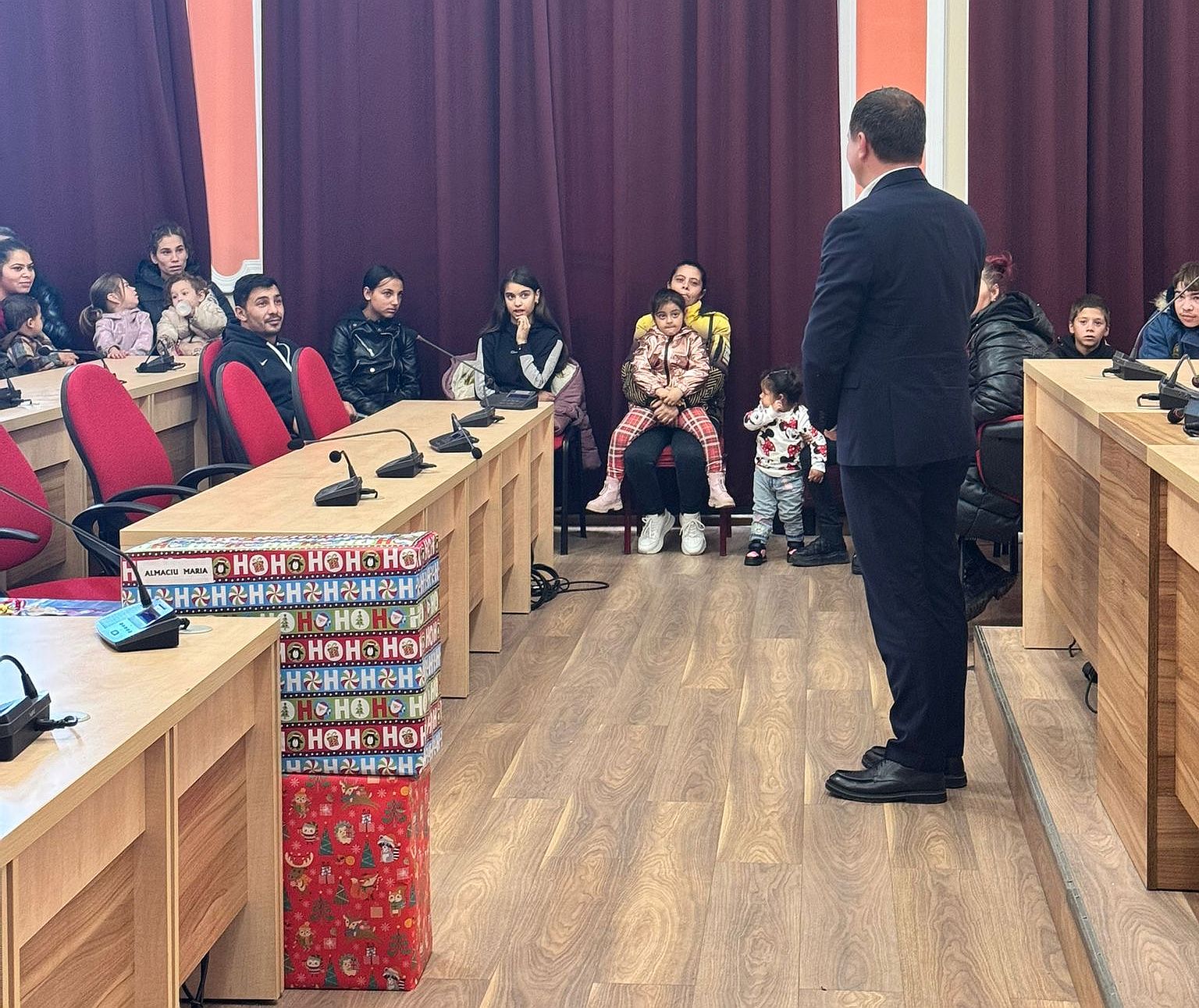 Pachetele au fost dăruite copiilor în sala de ședințe a Primăriei Municipiului Deva, în prezența conducerii instituției.