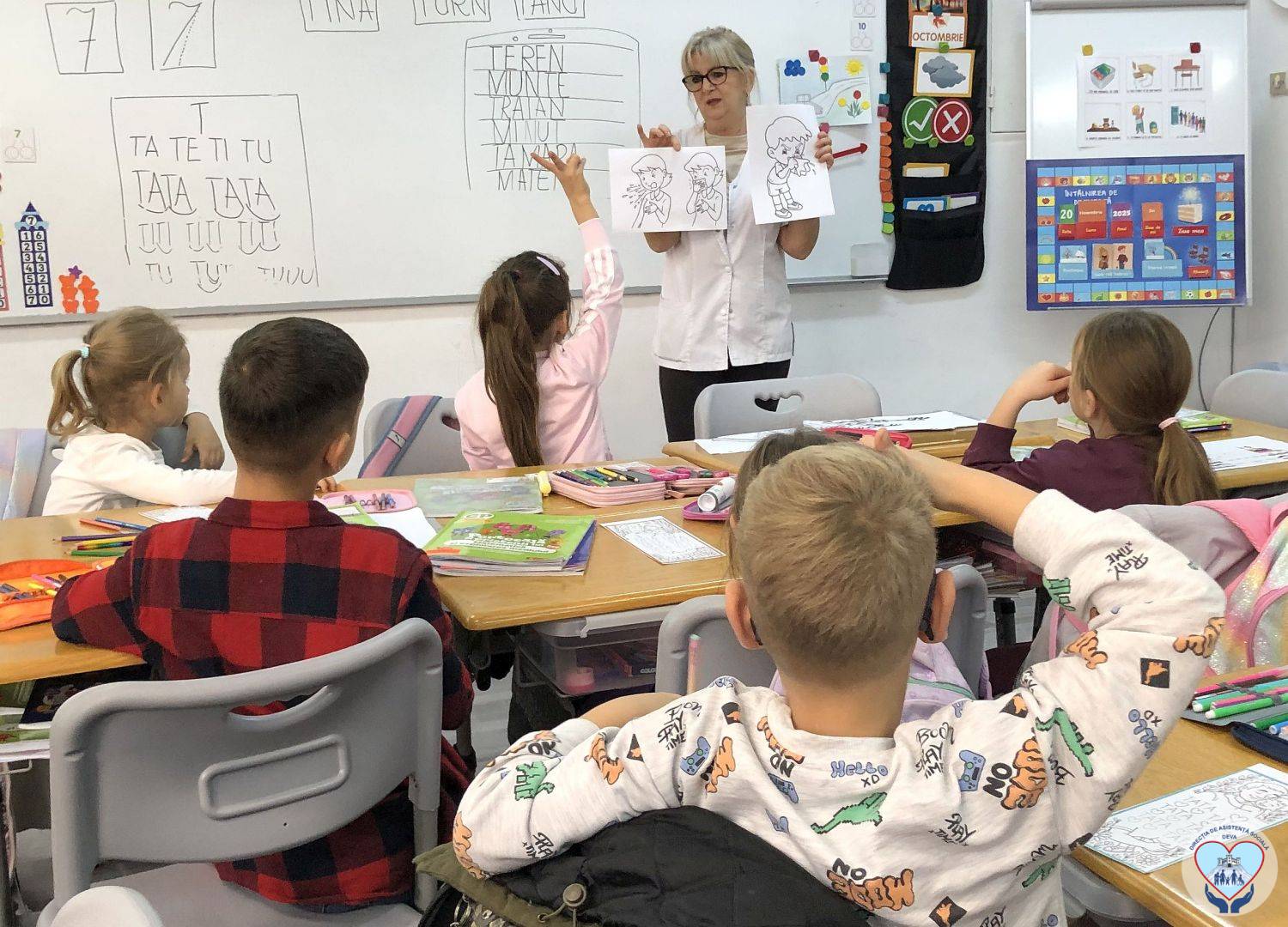 Două clase de elevi, cu vârste de 6 și 7 ani, de la Liceul de Arte „Sigismund Toduță” Deva, au participat, la finele săptămânii trecute, la o lecție de educație despre sănătate – pe teme de igienă și alimentație sănătoasă, susținută de Cabinetul medical școlar nr. 3 în parteneriat cu reprezentanți ai Farmaciilor Leeva. La întâlnire a fost prezent și directorul adjunct al liceului, care este profesor pentru învățământul primar.