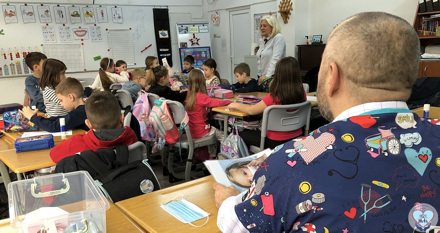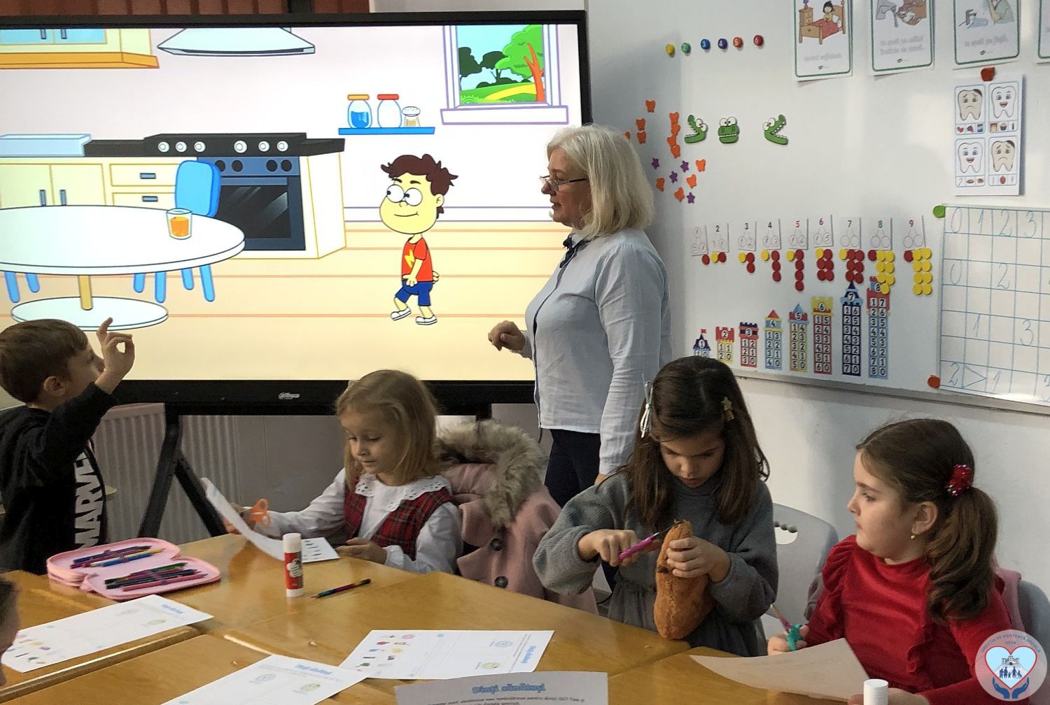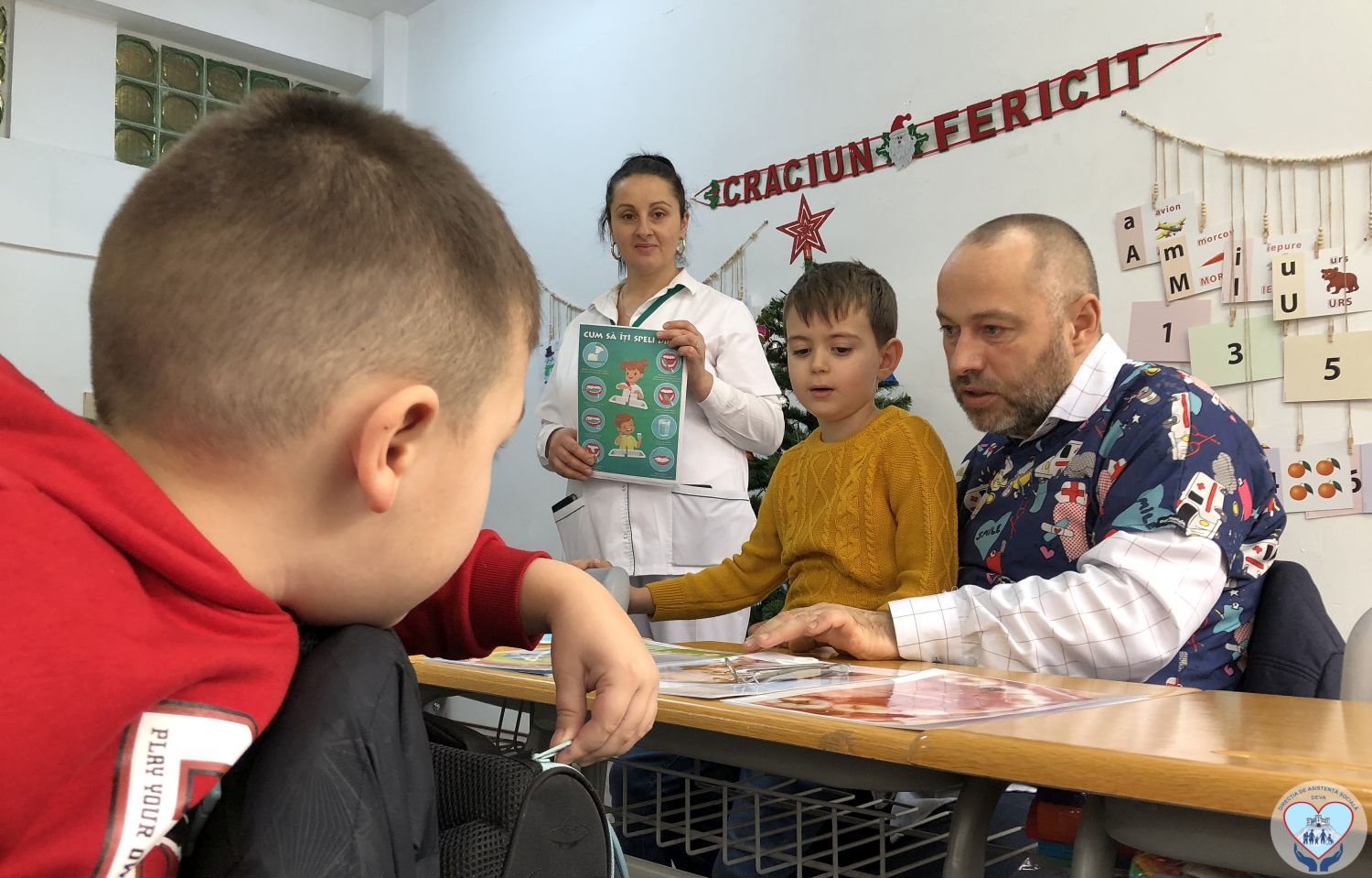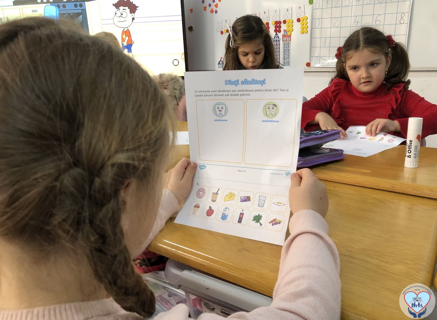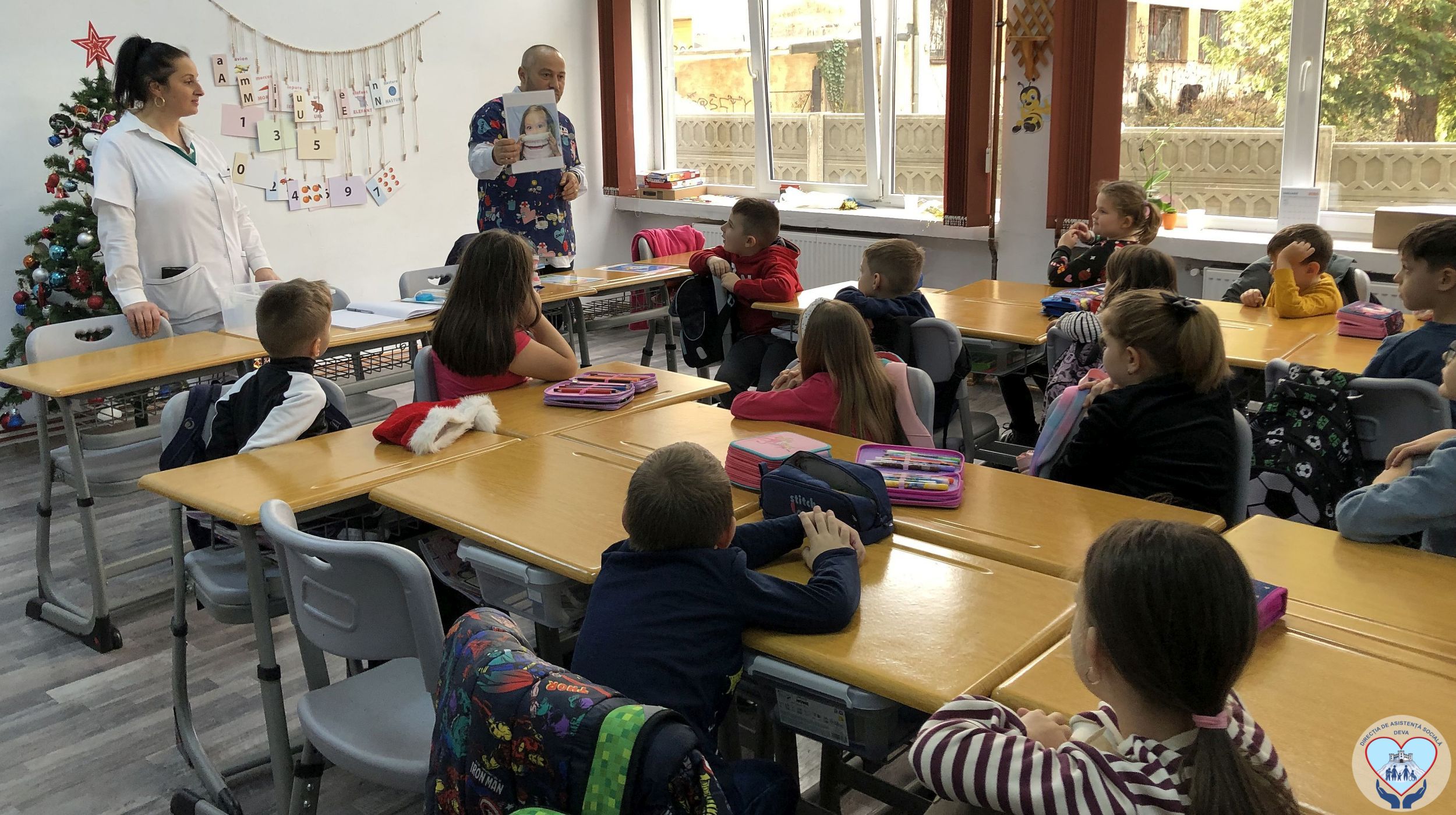 Lecția de educație dentară a făcut parte din seria activităților pe care cabinetele școlare de stomatologie le desfășoară în rândul preșcolarilor și elevilor cu vârste între 4 și 11 ani, cu scopul încurajării acestora de a face din spălatul dinților un obicei plăcut.