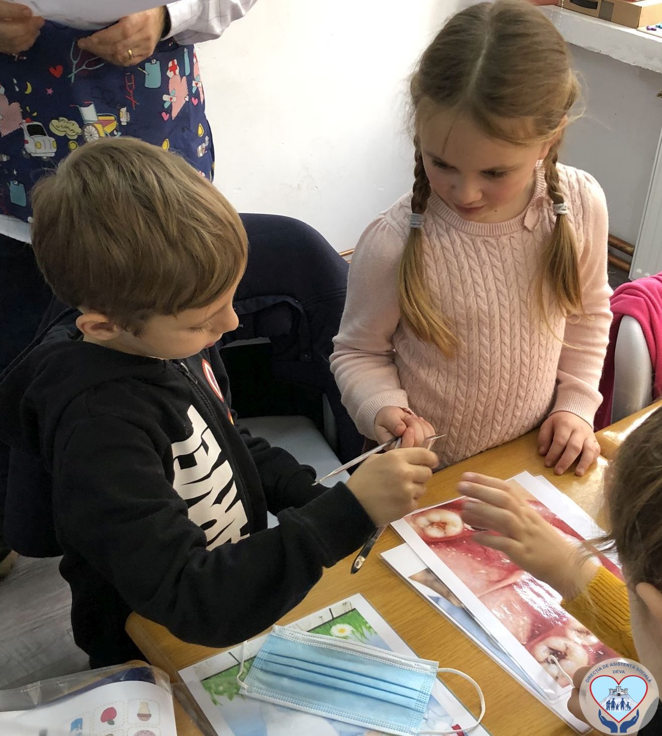 În timp ce unii dintre elevi și-au povestit experiențele la dentist, odată cu pierderea primilor dinți de lapte, alții au exersat mișcările corecte de periaj dentar și au analizat curioși instrumentele dentare.