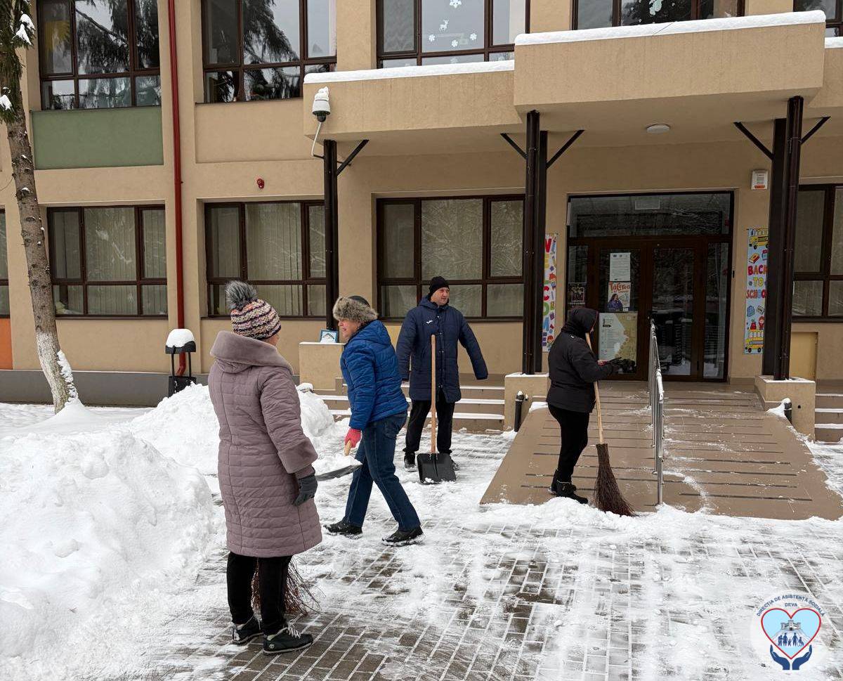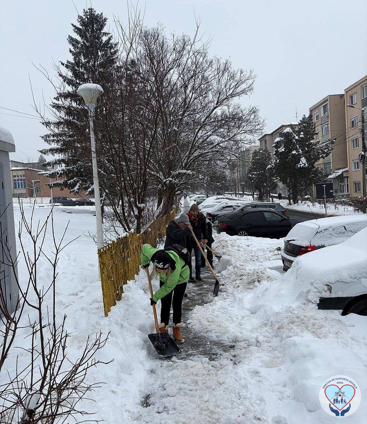 Angajați ai Direcției de Asistență Socială Deva au participat, sâmbătă, 10 ianuarie 2026, la acțiunile de deszăpezire desfășurate, de mai bine de o săptămână, de administrația publică locală din municipiul Deva.
