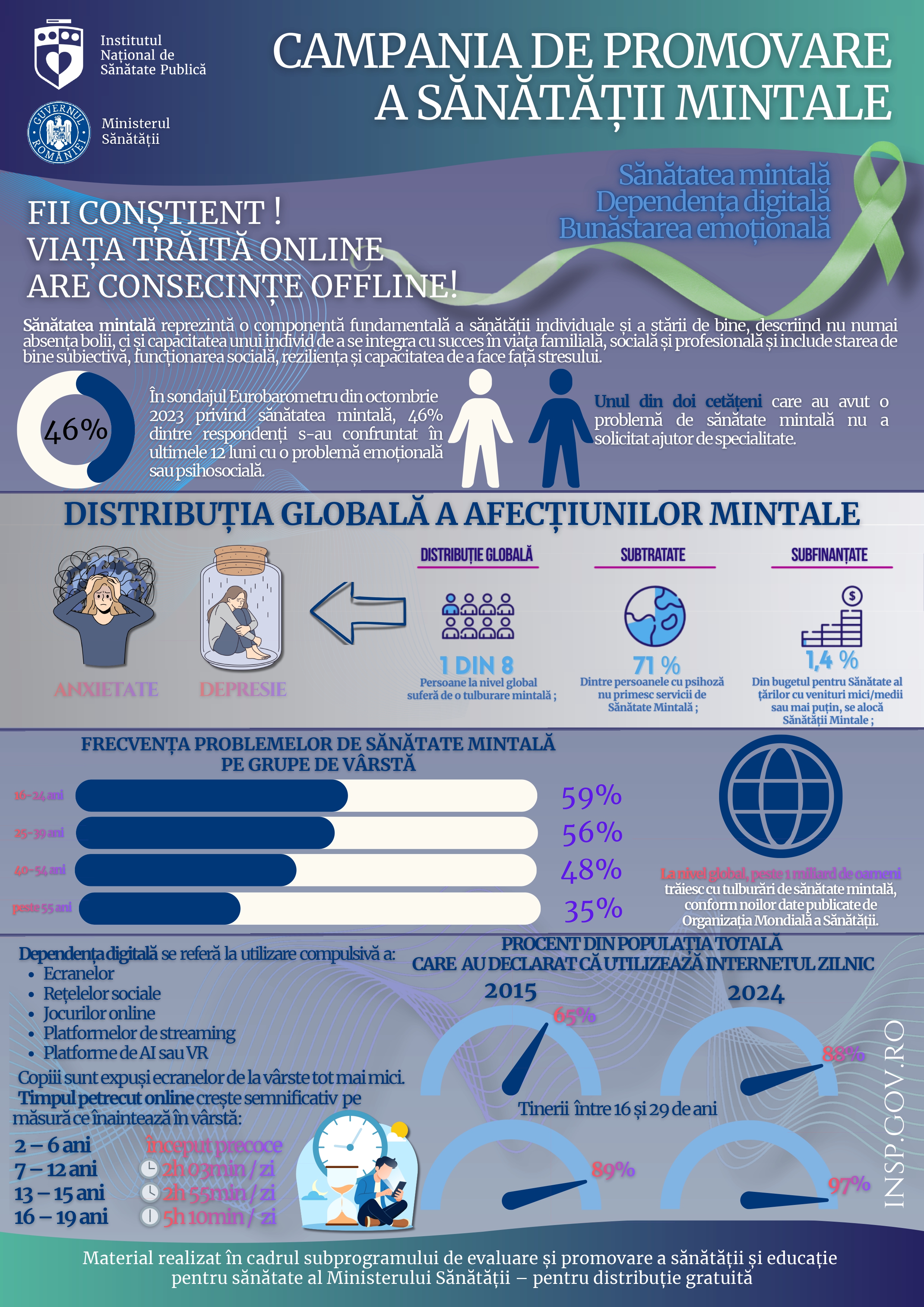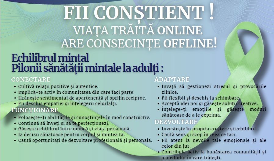 Inițiativa urmărește abordarea provocărilor de sănătate mintală generate de utilizarea mediului online și se derulează sub sloganul „Fii conștient! Viața trăită online are consecințe offline!”.