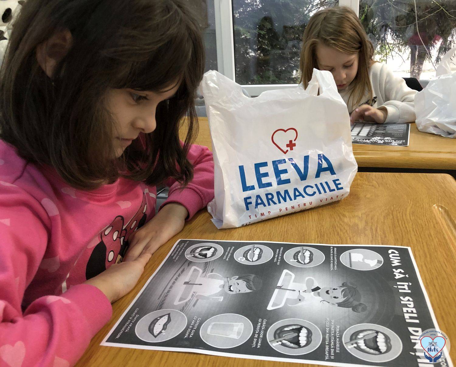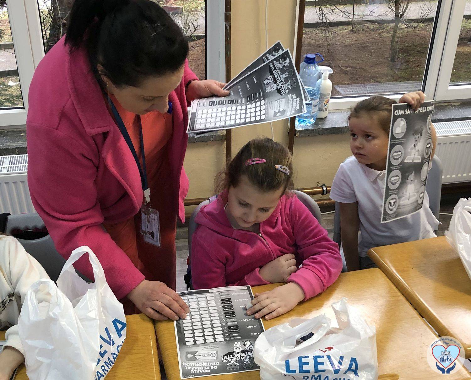 La finalul întâlnirii, toți copiii au primit pachete cu pastă de dinți, periuțe, ață dentară și apă de gură, oferite de Farmaciile Leeva.