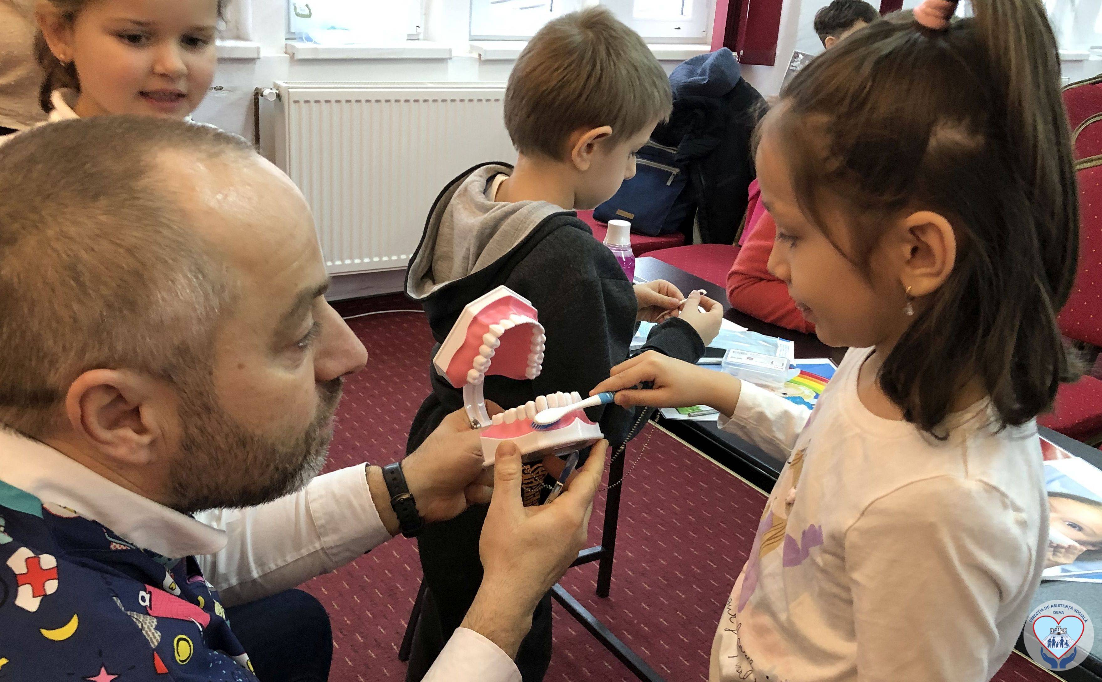 În timpul întâlnirii, dentistul le-a explicat participanților că deprinderea de a-și spăla dinții de cel puțin două ori pe zi trebuie formată încă de la vârste mici pentru că obiceiurile stabilite în copilărie sunt esențiale la vârsta adultă.