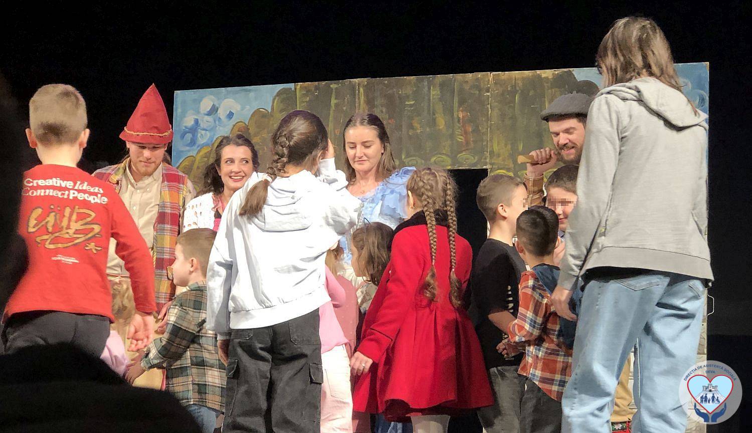 Un grup de copii aparținând minorității rome, care n-au intrat niciodată într-o sală de spectacol, au fost invitați la teatru, duminică, 15 martie 2026, în cadrul unui program educațional, organizat de Direcția de Asistență Socială Deva și GAL Urban „Cetate” Deva, cu sprijinul Teatrului de Artă Deva.